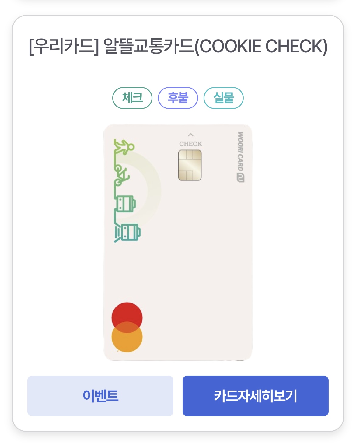 알뜰교통카드 체크카드 종류에는 기존에 신한카드, 우리 카드, 하나카드가 있었고, 이번에 국민, 농협, 삼성, IBK기업, 케이뱅크, 현대카드에서 새롭게 체크카드를 출시했습니다.