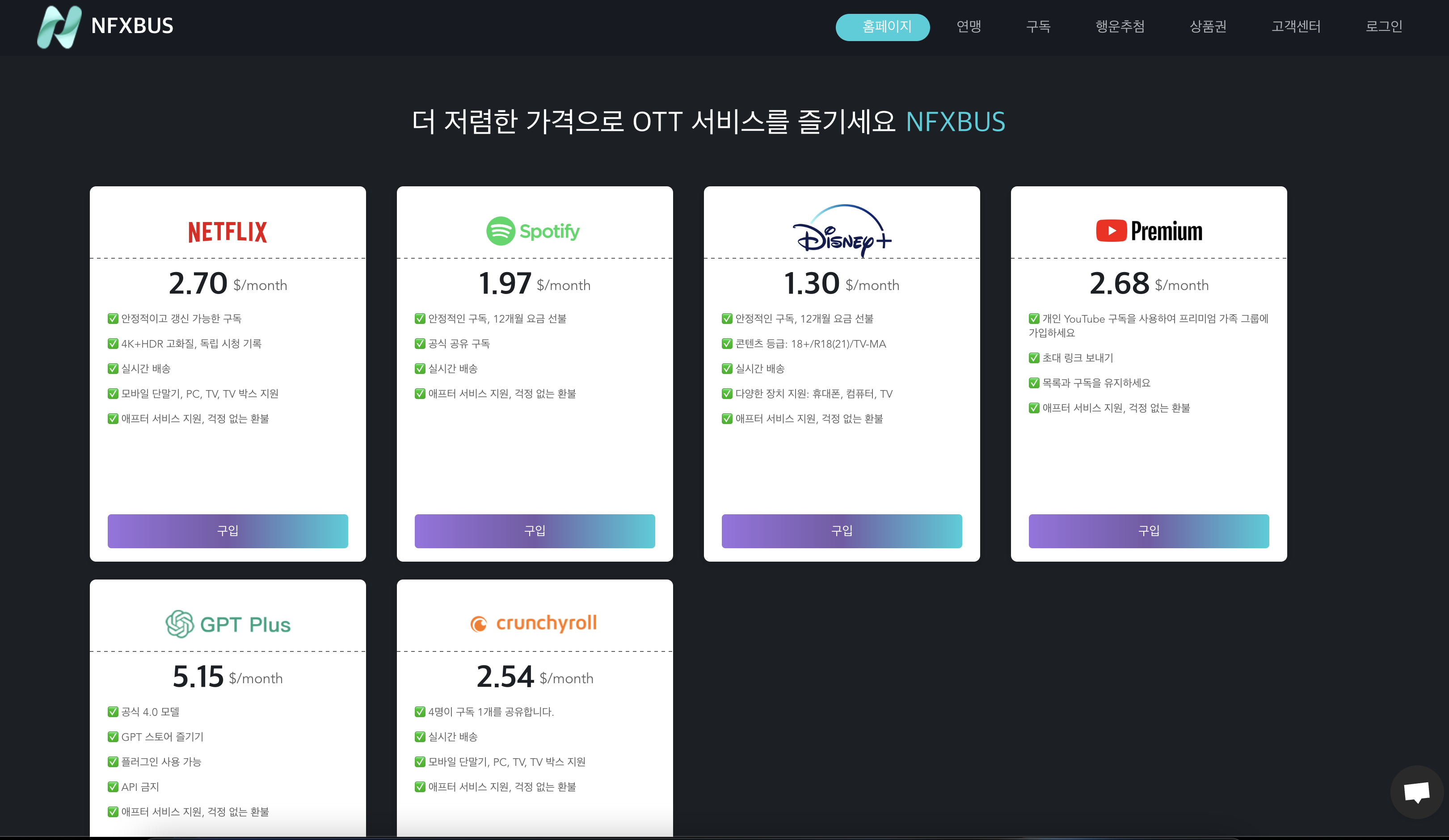 | 유튜브 프리미엄 NFXBUS로 구독하기(월 3천원대) (0) | 2024.03.19 |