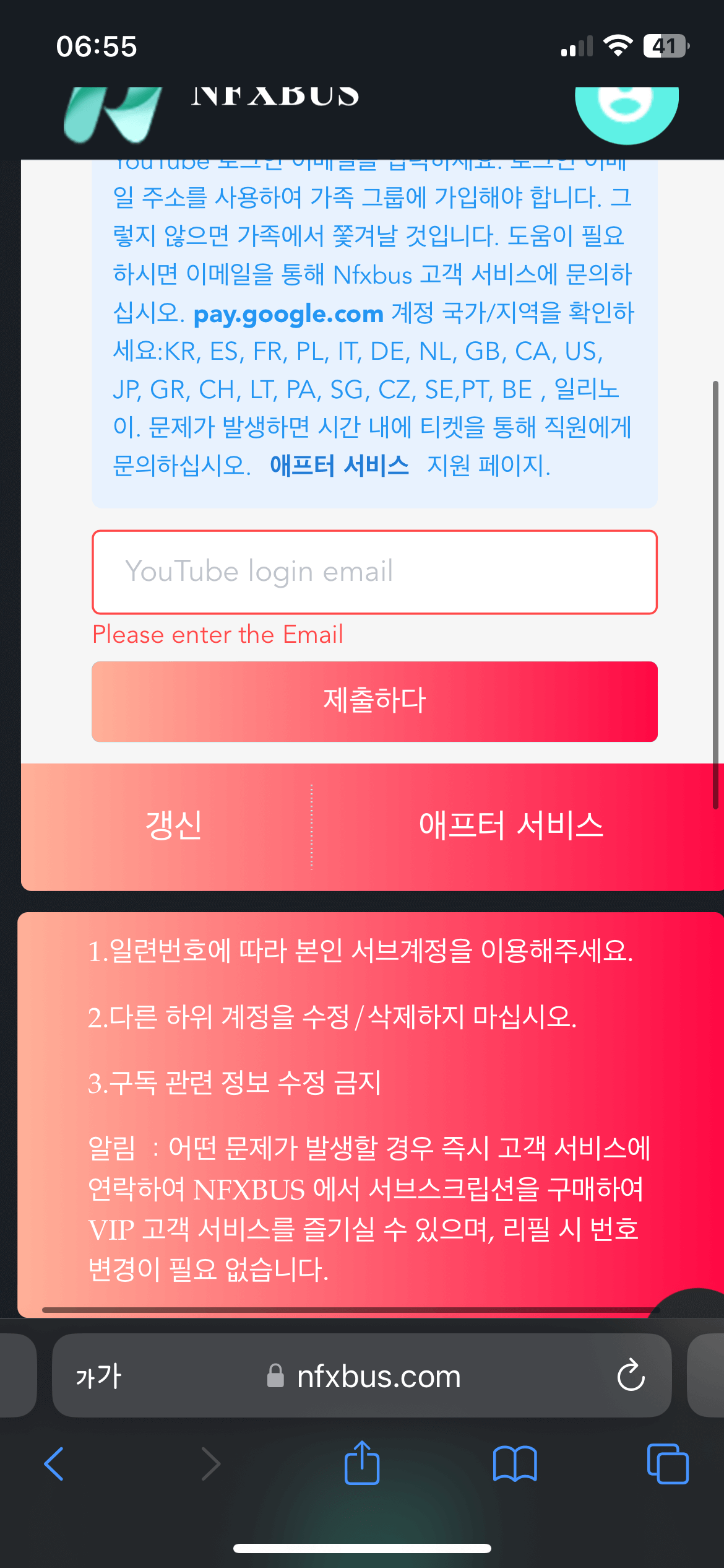OTT 쉐어 공유 플랫폼인 NFXBUS 사이트에서 유튜브 프리미엄을 월 3천원대로 매우 싸게 구독할 수 있습니다.